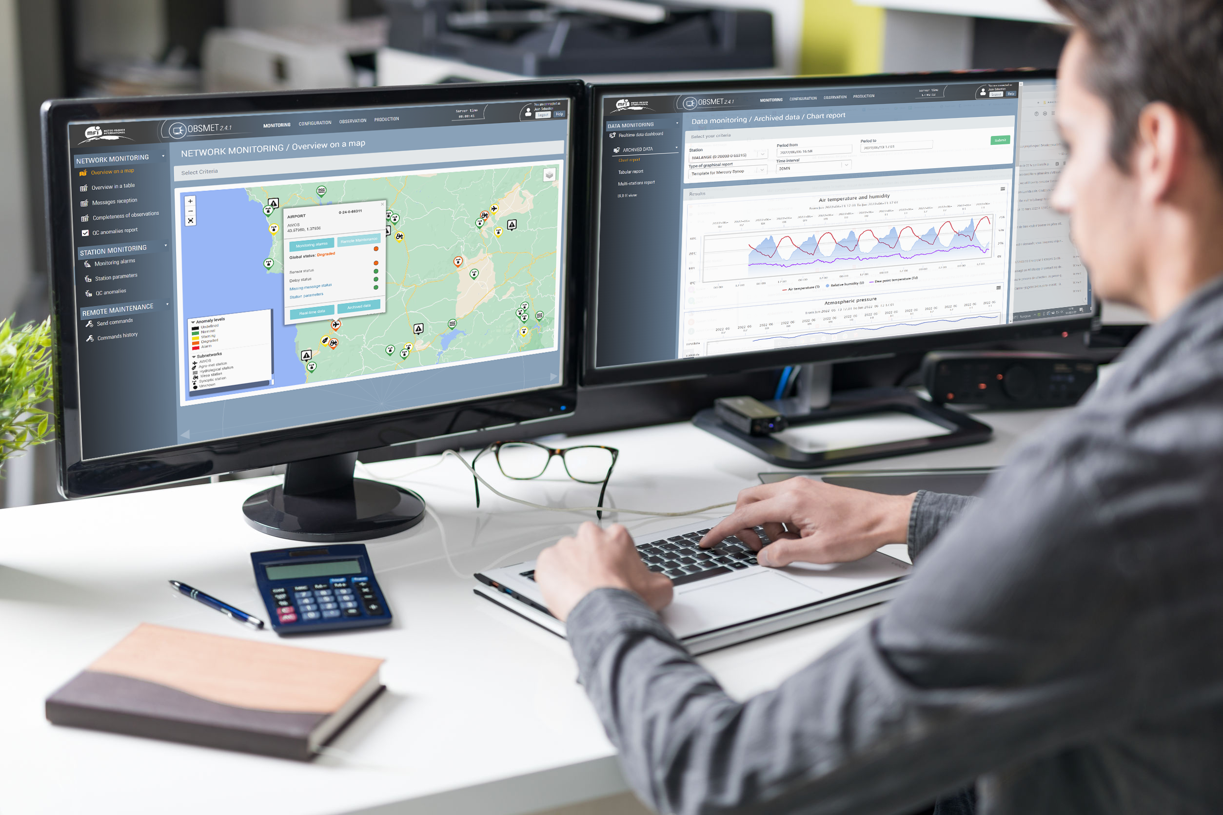 - Formulaires de saisie manuelle pour l’opérateur local, directement au niveau de la station synoptique.
