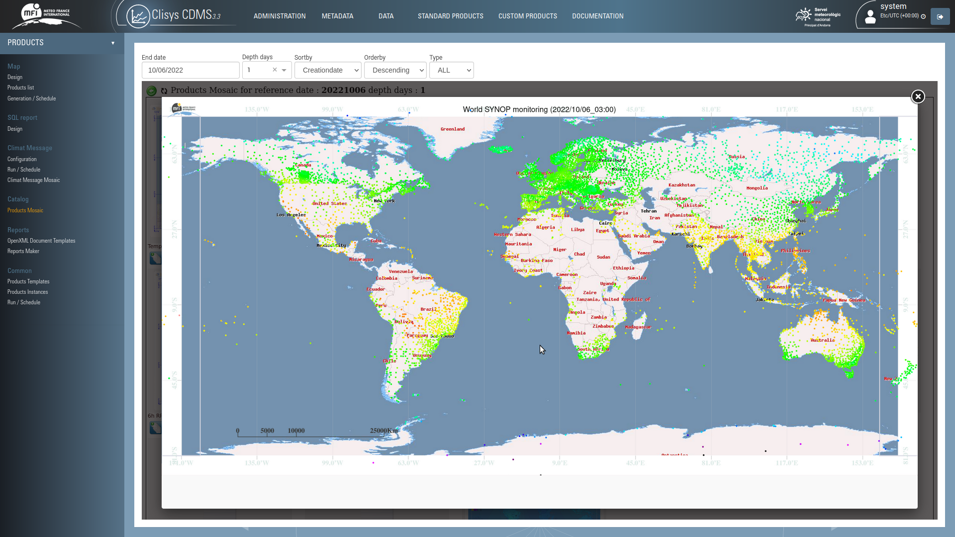 - Fonctionnalités de surveillance du climat (cartes de diagnostic, bulletins, référence historique, veille, etc.) pour les Centres Climatiques Nationaux ou Régionaux.